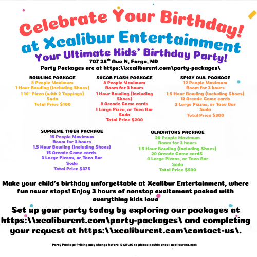 For a comprehensive list of options for birthday parties in Fargo, please scroll down.