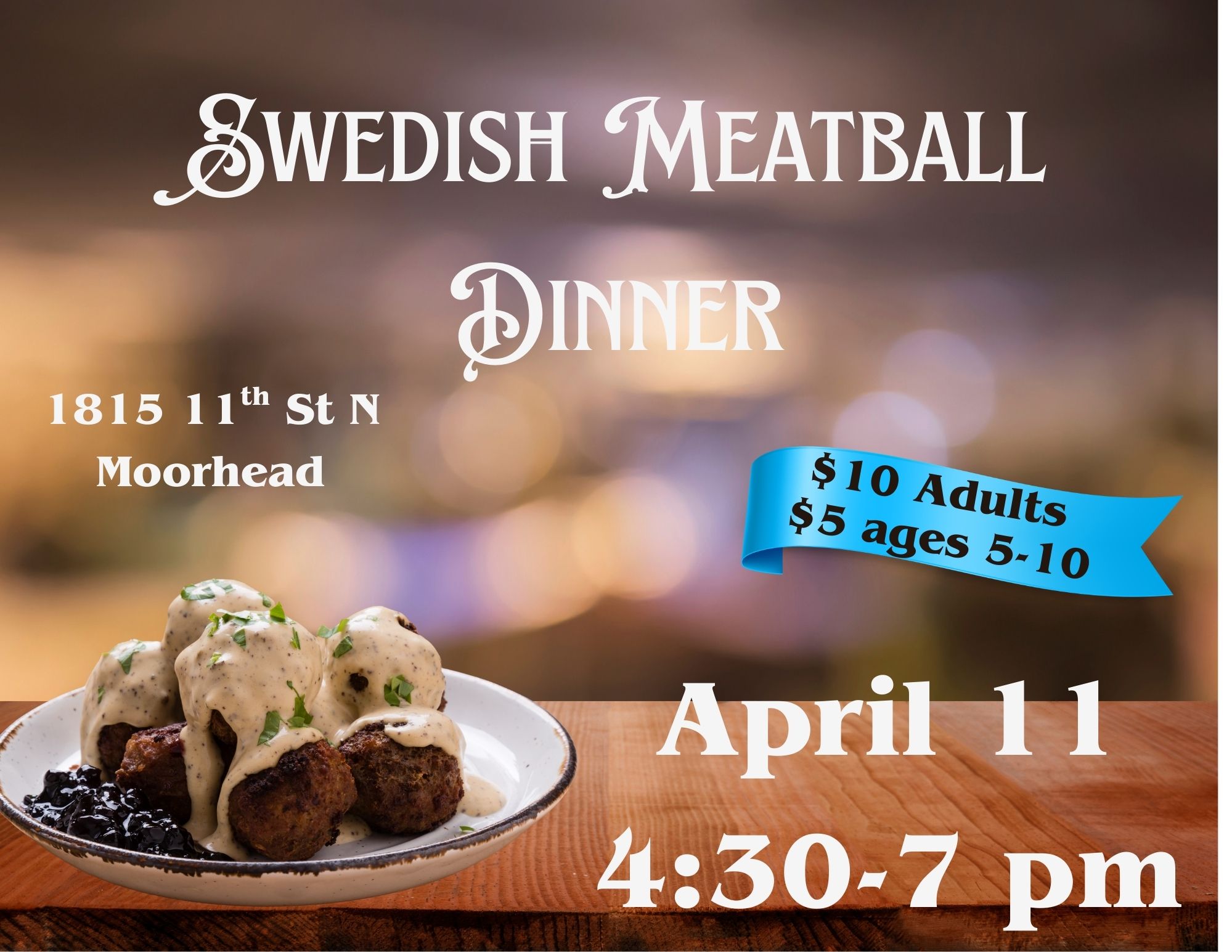 Come to the Moorhead Masonic Family Center, 1815 11th St N Moorhead for the Swedish Meatball Dinner on Apr 11 from 4:30-7. Tickets are $10 for adults, $5 for 10-5, Free 4 and under.