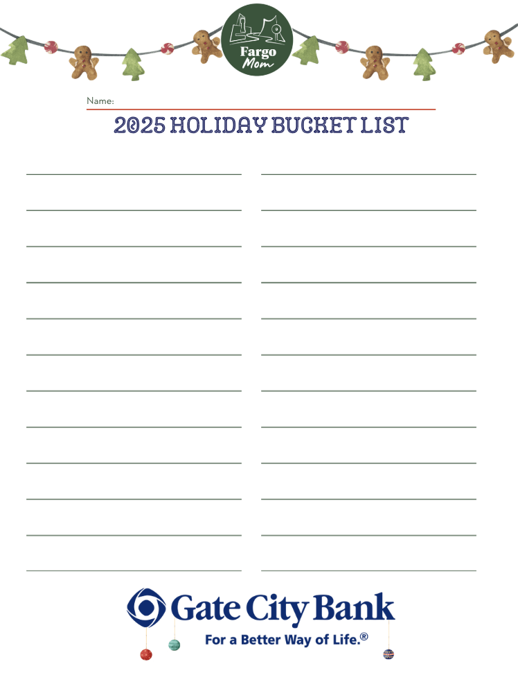 Thank you to Gate City Bank for partnering with us and making this Holiday Bucket List possible for Fargo families!